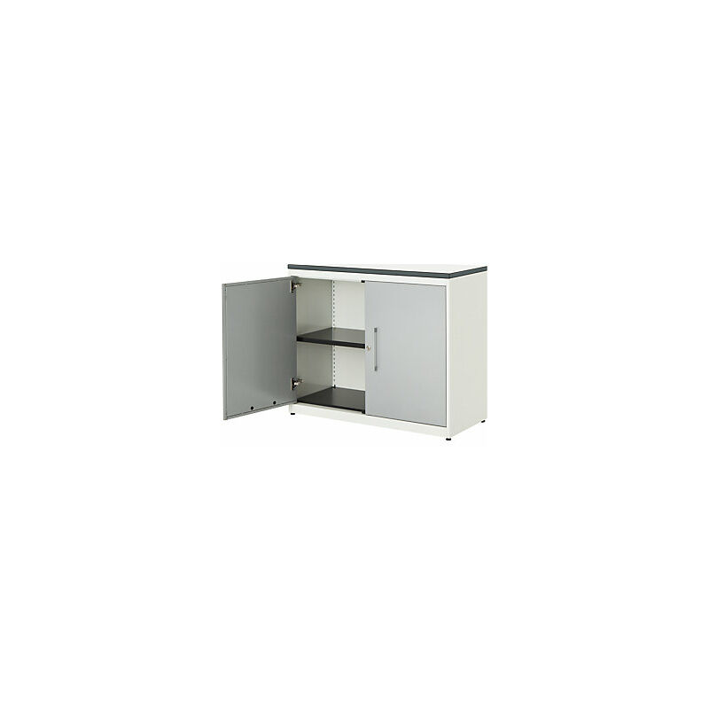 Armadio con ante a battente, alt. x largh. 830 x 1000 mm, pannello in plastica, 1 ripiano, bianco puro / alluminio brillante / bianco. Fornitura = montato. Larghezza = 1000 mm. Altezza = 830 mm. Profondità = 432 mm. Colore corpo = bianco puro RAL 9010. Materiale = acciaio, verniciato a polvere. Tipo di prodotto = armadi con ante a battente. Tipo di porta = anta a battente. Colore porta = alluminio brillante RAL 9006. Numero ante = 2 pz. Numero ripiani = 1 pz. Materiale ripiani = acciaio, verniciato a polvere. Colore ripiani = nero grafite RAL 9011. Portata per ripiano = 55 kg. Caratteristiche = con serratura. Serratura = serratura a cilindro girevole con chiusura a triplo chiavistello, 2 chiavi incluse. Numero file raccoglitori = 2 pz. Dotazione interna = 1 ripiano. Angolo di apertura delle porte = 120 °. Semplice spazio per raccoglitori, documenti e materiale da ufficio. Il modello classico tra gli armadi archivio. Design minimalista. Funzionalità pratica. Corpo: robusto corpo in