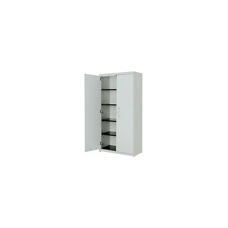 Armadio con ante a battente, alt. x largh. 1956 x 1000 mm, pannello in acciaio, 4 ripiani, grigio chiaro / grigio chiaro / grigio chiaro. Fornitura = montato. Larghezza = 1000 mm. Altezza = 1956 mm. Profondità = 432 mm. Colore corpo = grigio chiaro RAL 7035. Materiale = acciaio, verniciato a polvere. Tipo di prodotto = armadi con ante a battente. Tipo di porta = anta a battente. Colore porta = grigio chiaro RAL 7035. Numero ante = 2 pz. Numero ripiani = 4 pz. Materiale ripiani = acciaio, verniciato a polvere. Colore ripiani = nero grafite RAL 9011. Portata per ripiano = 55 kg. Caratteristiche = con serratura. Serratura = serratura a cilindro girevole con chiusura a triplo chiavistello, 2 chiavi incluse. Numero file raccoglitori = 5 pz. Dotazione interna = 4 ripiani. Angolo di apertura delle porte = 120 °. Semplice spazio per raccoglitori, documenti e materiale da ufficio. Il modello classico tra gli armadi archivio. Design minimalista. Funzionalità pratica. Corpo: robusto corpo in