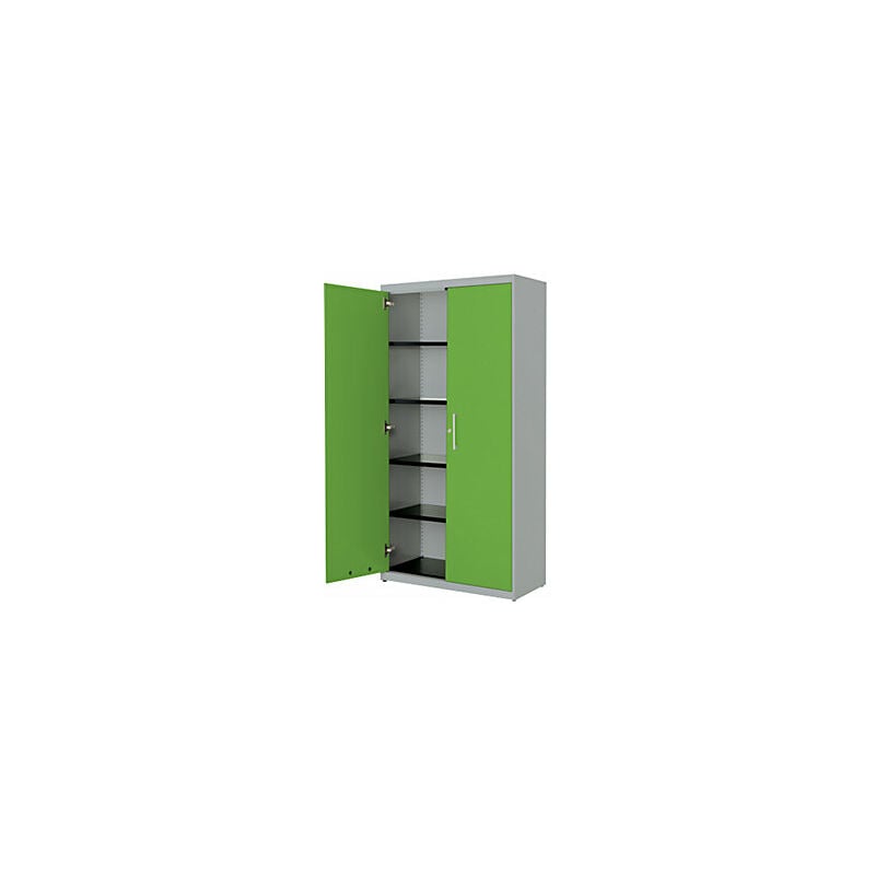 Armadio con ante a battente, alt. x largh. 1956 x 1000 mm, pannello in acciaio, 4 ripiani, alluminio brillante / verde limone / alluminio brillante. Fornitura = montato. Larghezza = 1000 mm. Altezza = 1956 mm. Profondità = 432 mm. Colore corpo = alluminio brillante RAL 9006. Materiale = acciaio, verniciato a polvere. Tipo di prodotto = armadi con ante a battente. Tipo di porta = anta a battente. Colore porta = verde limone RAL 6018. Numero ante = 2 pz. Numero ripiani = 4 pz. Materiale ripiani = acciaio, verniciato a polvere. Colore ripiani = nero grafite RAL 9011. Portata per ripiano = 55 kg. Caratteristiche = con serratura. Serratura = serratura a cilindro girevole con chiusura a triplo chiavistello, 2 chiavi incluse. Numero file raccoglitori = 5 pz. Dotazione interna = 4 ripiani. Angolo di apertura delle porte = 120 °. Semplice spazio per raccoglitori, documenti e materiale da ufficio. Il modello classico tra gli armadi archivio. Design minimalista. Funzionalità pratica. Corpo