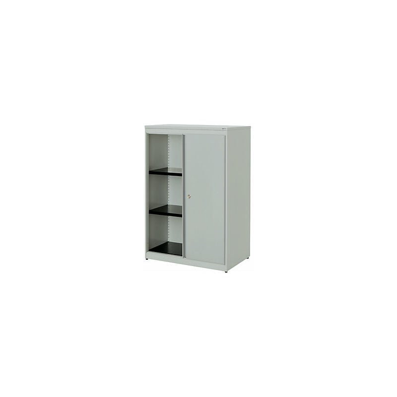 Armadio con ante scorrevoli, alt. x largh. x prof. 1180 x 800 x 432 mm, pannello in plastica, 2 ripiani, grigio chiaro / grigio chiaro / grigio chiaro. Fornitura = montato. Larghezza = 800 mm. Altezza = 1180 mm. Profondità = 432 mm. Colore corpo = grigio chiaro RAL 7035. Materiale = acciaio, verniciato a polvere. Tipo di prodotto = armadi con ante scorrevoli. Tipo di porta = porta scorrevole. Colore porta = grigio chiaro RAL 7035. Numero ante = 2 pz. Numero ripiani = 2 pz. Colore ripiani = nero grafite RAL 9011. Portata per ripiano = 44 kg. Caratteristiche = con serratura. Serratura = serratura a cilindro girevole con nucleo sostituibile, 2 chiavi incluse. Numero file raccoglitori = 3 pz. Dotazione interna = 2 ripiani. Linea di armadi di qualità con numerose possibilità di allestimento. Sfruttamento ottimale degli spazi mediante varianti combinabili tra loro in modo flessibile. Design moderno dalle linee eleganti. Versione salvaspazio con ante agevolmente scorrevoli. Se nell'ufficio