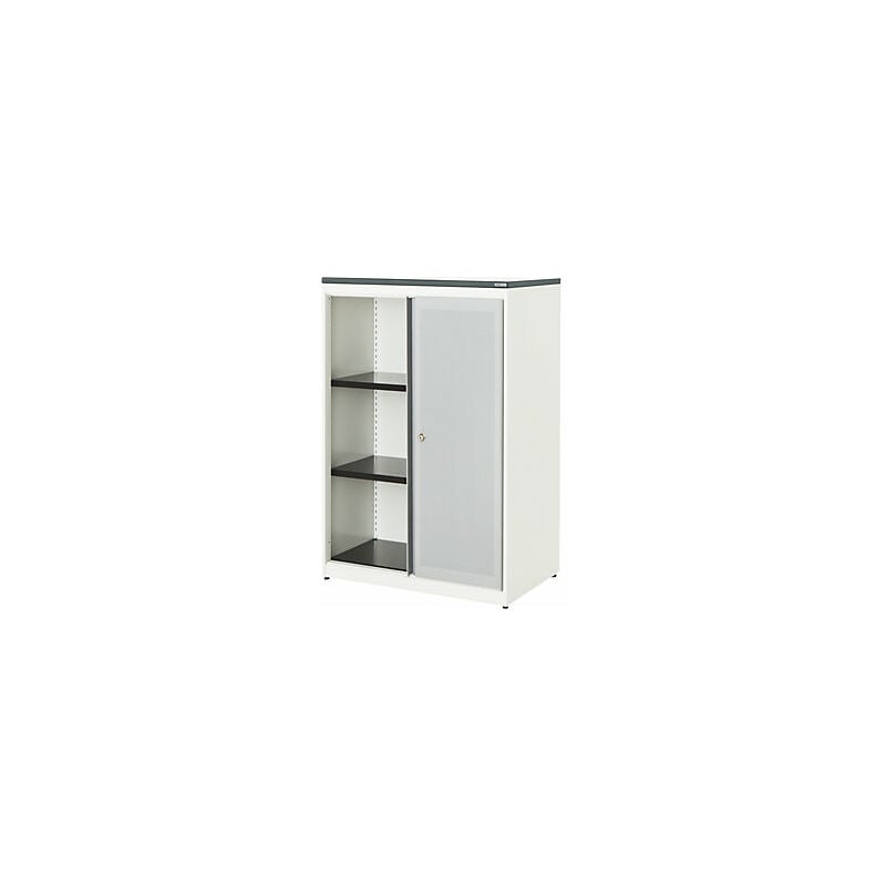 Armadio con ante scorrevoli, con efficace assorbimento acustico, pannello in plastica, alt. x largh. x prof. 1180 x 800 x 432 mm, 2 ripiani, bianco puro / alluminio brillante / bianco. Fornitura = montato. Larghezza = 800 mm. Altezza = 1180 mm. Profondità = 432 mm. Colore corpo = bianco puro RAL 9010. Materiale = acciaio, verniciato a polvere. Tipo di prodotto = armadi con ante scorrevoli. Tipo di porta = porta scorrevole. Colore porta = alluminio brillante RAL 9006. Numero ante = 2 pz. Numero ripiani = 2 pz. Colore ripiani = nero grafite RAL 9011. Portata per ripiano = 44 kg. Caratteristiche = con serratura. Serratura = serratura a cilindro girevole con nucleo sostituibile, 2 chiavi incluse. Numero file raccoglitori = 3 pz. Dotazione interna = 2 ripiani. Versione salvaspazio con ante agevolmente scorrevoli. Se nell'ufficio prevalgono aree di transito molto strette, si consiglia l'utilizzo di questo armadio. Qui nessuna anta aperta ingombrerà il passaggio. Ideale per piano d'appoggio