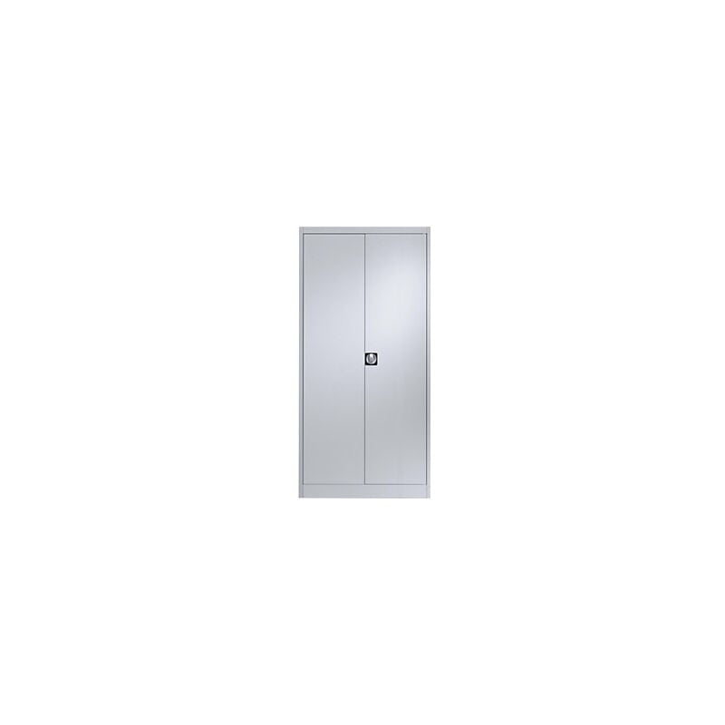 Armadio in acciaio con ante a battente, 4 ripiani, profondità 600 mm, alluminio brillante. Fornitura = montato. Larghezza = 950 mm. Altezza = 1950 mm. Profondità = 600 mm. Colore corpo = alluminio brillante RAL 9006. Materiale = lamiera d'acciaio, con verniciatura a forno. Tipo di prodotto = armadi con ante a battente. Tipo di porta = anta a battente. Colore porta = alluminio brillante RAL 9006. Numero ripiani = 4 pz. Colore ripiani = nero grafite RAL 9011. Portata per ripiano = 65 kg. Serratura = serratura di sicurezza a cilindro con nucleo sostituibile, 2 chiavi incluse. Dotazione interna = 4 ripiani. Passo di regolazione altezza ripiani = 35 mm. Altezza zoccolo = 100 mm. Angolo di apertura delle porte = 135 °. Spessore del corpo = 0.8 mm. Con ante a battente. Robusto corpo spesso 0,8 mm in lamiera d'acciaio saldata e riciclabile. Verniciatura a fuoco di qualità. Ripiani verniciati regolabili in altezza con passo di 35 mm. Portata ca. 65 kg per ripiano. Ante antisvergolamento con
