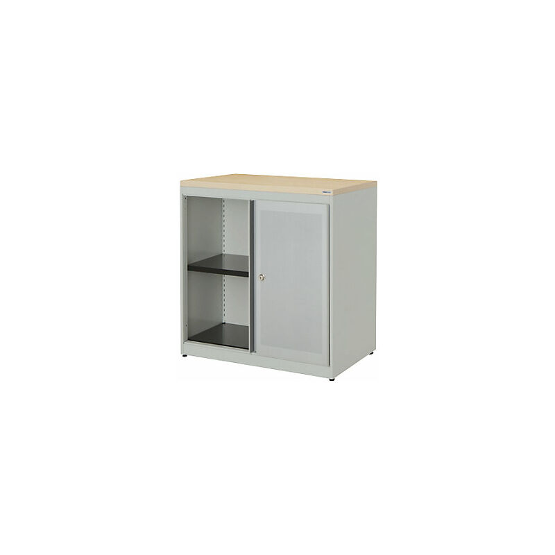 Armadio con ante scorrevoli, con efficace assorbimento acustico, pannello in plastica, alt. x largh. x prof. 830 x 800 x 432 mm, 1 ripiano, alluminio brillante / alluminio brillante / acero. Fornitura = montato. Larghezza = 800 mm. Altezza = 830 mm. Profondità = 432 mm. Colore corpo = alluminio brillante RAL 9006. Materiale = acciaio, verniciato a polvere. Tipo di prodotto = armadi con ante scorrevoli. Tipo di porta = porta scorrevole. Colore porta = alluminio brillante RAL 9006. Numero ante = 2 pz. Numero ripiani = 1 pz. Colore ripiani = nero grafite RAL 9011. Portata per ripiano = 44 kg. Caratteristiche = con serratura. Serratura = serratura a cilindro girevole con nucleo sostituibile, 2 chiavi incluse. Numero file raccoglitori = 2 pz. Dotazione interna = 1 ripiano. Versione salvaspazio con ante agevolmente scorrevoli. Se nell'ufficio prevalgono aree di transito molto strette, si consiglia l'utilizzo di questo armadio. Qui nessuna anta aperta ingombrerà il passaggio. Ideale per piano