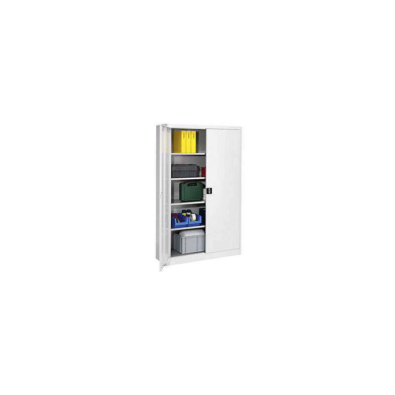 L'armadio con ante a battente per carichi pesanti è la soluzione perfetta per chi ha bisogno di organizzare e conservare merce medio-pesante in modo efficiente. Con una struttura saldata e una portata fino a 700 kg, questo armadio assicura resistenza e durabilità nel tempo. I quattro ripiani zincati, regolabili in altezza, permettono di adattare lo spazio interno alle diverse esigenze di stoccaggio. La robusta struttura in lamiera d'acciaio verniciata a polvere, nei toni del grigio chiaro, conferisce un'estetica moderna e professionale. La serratura a cilindro girevole garantisce massima sicurezza, mentre i piedini regolabili semplificano la messa in piano. Con questo armadio, avrai sempre tutto in ordine e sicuro, migliorando l'organizzazione e la gestione dei tuoi carichi pesanti. Ideale per magazzini, officine e laboratori, rappresenta un investimento indispensabile per ottimizzare lo spazio e facilitare il tuo lavoro. Une vita più semplice e organizzata ti aspetta con l'armadio con