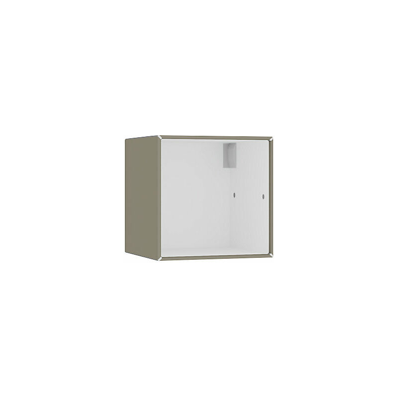 Box singolo aperto, da appendere, larghezza 385 mm, grigio beige / bianco puro. Fornitura = montato. Larghezza = 385 mm. Altezza = 385 mm. Profondità = 385 mm. Colore corpo = grigio beige RAL 7006, bianco puro RAL 9010. Materiale = acciaio. Tipo di prodotto = box singoli aperti. Numero file raccoglitori = 1 pz. element.x è un sistema di stoccaggio modulare estremamente innovativo per organizzare, mettere via e presentare. È un sistema molto versatile per la zona living, la casa o l'ufficio. Eccellente stabilità grazie al robusto corpo in lamiera d'acciaio a doppia parete. Verniciatura a polvere di alta qualità. Design elegante grazie ai listelli angolari cromati. L'elemento pensile è uno scaffale aperto a 1 scomparto ideale per decorare le pareti in ingressi, sale d'attesa, uffici, sale conferenze o in appartamenti. In alternativa, il pensile offre molto spazio utile.