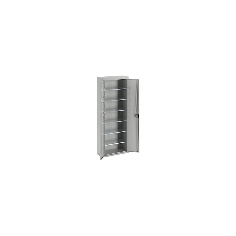 L'armadio magazzino senza cassettine è la soluzione ideale per organizzare in modo efficiente il tuo spazio di lavoro. Realizzato in resistente lamiera d'acciaio con una verniciatura a forno, garantisce solidità e durata nel tempo. Con 6 ripiani regolabili in altezza e una portata di 50 kg per piano, potrai organizzare i tuoi materiali in modo ordinato e accessibile. Le ante a battente con chiusura a triplo chiavistello e serratura di sicurezza offrono la massima protezione per i tuoi utensili e gli accessori. Con il suo design elegante in grigio chiaro, si adatta perfettamente a qualsiasi ambiente. Rendi più facile la tua vita lavorativa con l'armadio magazzino di alta qualità e funzionalità.