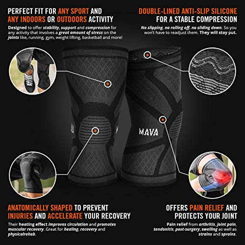 Mava Sport - ginocchiera tubolare di sostegno (coppia) per alleviare dolori articolari e artrite, curare le lesioni, migliorare la circolazione - Sostegno traspirante per corsa, jogging, passeggiate e riabilitazione.