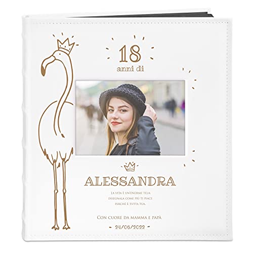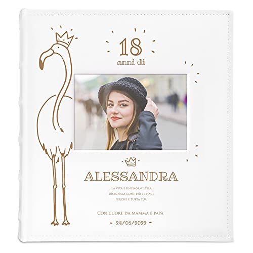 Maverton Album Fotografico Personalizzato con Incisione a Laser - Copertina Rigida in Pelle Sintetica con Finestra - 60 pagine - 240 foto 10x15 cm - regalo donna - Fenicottero