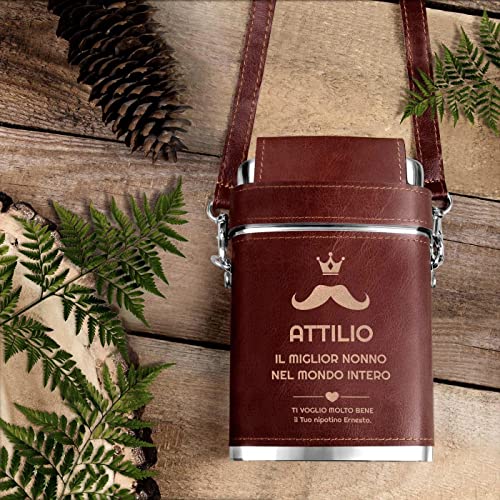 REGALO MERAVIGLIOSAMENTE ORIGINALE! Questa nostra fiaschetta tascabile è un regalo perfetto per tutti gli uomini. Il suo design sofisticato è in grado di conquistare il cuore di ogni papà, nonno, figlio, fratello, amico.. È un pensiero perfetto per le occasioni come compleanno, festa del papà, onomastico ecc.. speciale per le occasioni senza una vera occasione..per dimostrare ai vostri cari quanto volete loro bene.