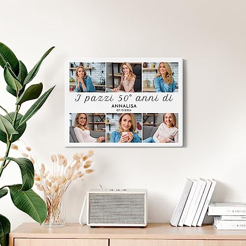 Maverton Quadro con foto - stampa personalizzata - foto e scritte personalizzate - tela con fotografie grande o piccola - pensiero originale donna per compleanno - pazzi 50-30 x 40 cm
