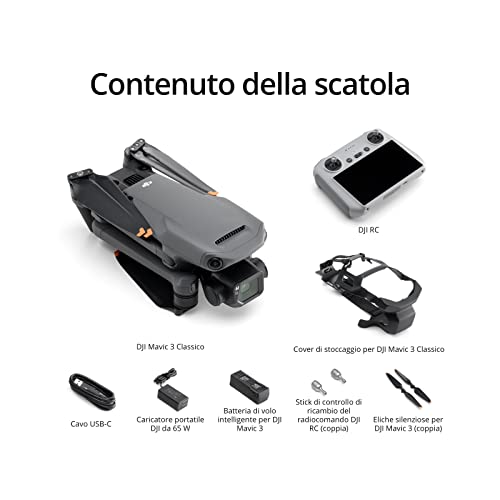 DJI Mavic 3 Classico (DJI RC) - Drone con fotocamera Hasselblad con CMOS da 4/3, video in 5.1K HD, autonomia di 46 min, trasmissione fino a 15 km, ritorno automatico intelligente