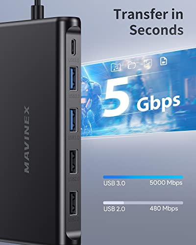 Hub USB C 12 in 1, MAVINEX Adattatore USB-C per Triplo Display e con Ricarica PD da 100W, Dual HDMI 4K e VGA 1080p, Ethernet 1000Mbps, porte dati USB-C e 4 USB-A, Lettore scheda SD TF
