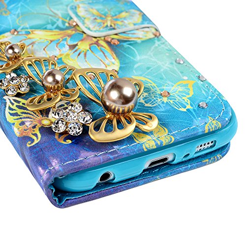 Mavis' s Diary S6 custodia, Samsung Galaxy S6 custodia case - lusso diamanti Starfish Summer Sea Travel Bling Gems chiusura magnetica a libro in pelle PU Flip Cover in silicone blu della porta carte di credito e supporto