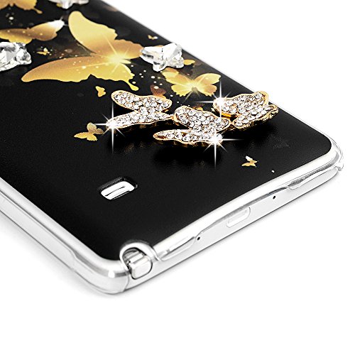 Mavis' s Diary Samsung Galaxy Note 4 Hand Made Caso 3d modello Diamante Duro Guscio Protettivo Glitter Bling Case Luxury Bling Shiny glanz Sparkle cristallo Crystal Clear Hard Case Custodia Trasparente Protective Skin Hard Back guscio protettore della pelle Case Cover Custodia Guscio Protettivo Guscio + 1 X capacitivi Pen + 1 X comune spina della polvere Gold Schmetterling