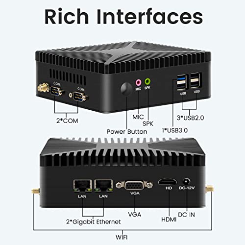 【Rich Ports】3*USB 2.0, 1*USB 3.0, 1*HDMI, 1*VGA, 2*Porta Gigabit Ethernet, 1*Audio in/out, 2*COM porta seriale. Le antenne possono potenziare i segnali di rete wireless. Supporta doppio display HDMI e VGA.