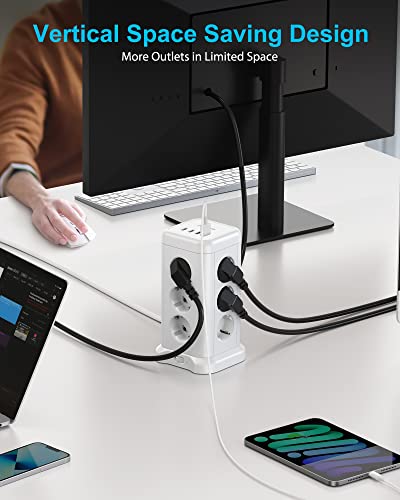 [Risparmia spazio] Il design della torre consente di risparmiare più spazio rispetto alla striscia USB orizzontale. C'è una striscia antiscivolo nella parte inferiore della torre della spina per garantire la stabilità del ladro di spine