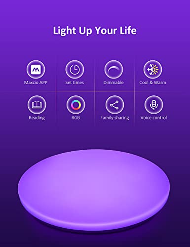 Maxcio Plafoniera LED Soffitto WiFi, Smart 24W Plafoniera LED Compatibile con Alexa e Google Home, 2400lm, RGB+Bianco Freddo/Calda Regolabile 3000-6500K, IP54 Impermeabile Adatto a Camera, Cucina