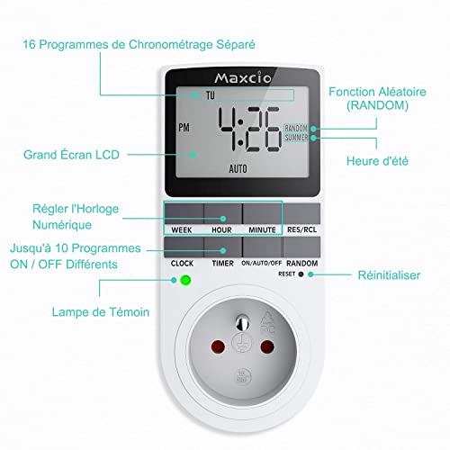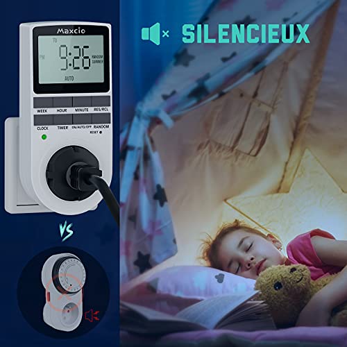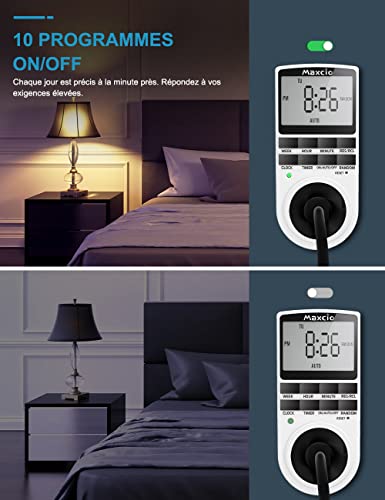 Maxcio - Presa programmabile, digitale giornaliera/settimanale, timer con schermo LCD e modalità casuale, antifurto, risparmio energetico, 16 A/3680 W max (2 confezioni)