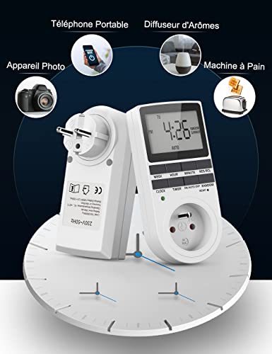 Facile da usare: grande schermo LCD per una migliore visibilità e una facile regolazione. Presa collegata ideale per l'illuminazione della casa, le luci di Natale e la decorazione, gli elettrodomestici da cucina, l'illuminazione dell'acquario e altri elettrodomestici, per massimizzare il risparmio energetico e semplificare i lavori. Se avete bisogno di un foglio illustrativo in francese o avete delle domande, non esitate a contattare il venditore.