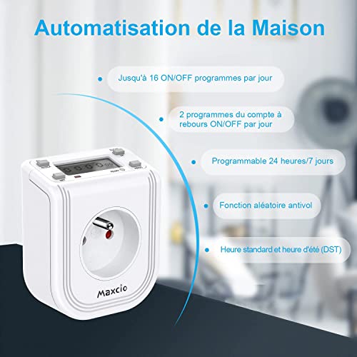 Maxcio - Programmatore per presa elettrica, programmabile digitale, 16 programmi, 12 h, 24 ore, 7 giorni, timer, presa elettrica con conto a carica e display LCD(2 pezzi)