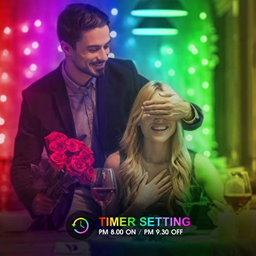 【Funzione Timer】-- Imposta il timer per accendere o spegnere automaticamente la striscia led, la striscia led rgb può anche essere controllata dal telecomando incluso. La striscia luminosa da 5m è la decorazione ideale in casa per Natale, compleanni, feste, ecc.