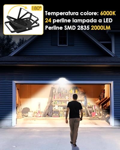 Ampia gamma di usi: La luce di sicurezza con il sensore è altamente sensibile e si accende automaticamente quando le persone o gli animali domestici passano. È un'ottima luce esterna per campi da basket, campi da calcio, cortili, case, giardini, patio, vialetti, garage, ecc.