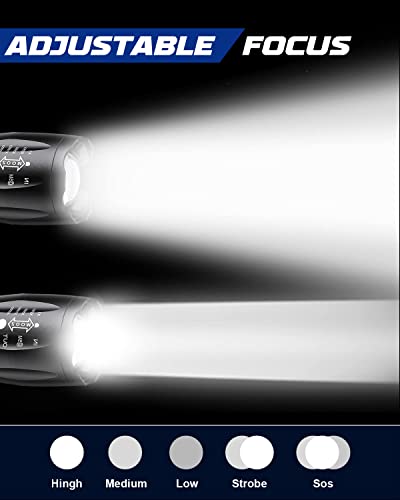 Maxesla Torcia LED Potente Professionale, 2 Pezzi Impermeabile 2000 Lumen Luminoso Mini Torcia Tattica, Portatile Torcia Regolabile, Torcia Potente 5 modalità di illuminazione, Con 6 x AAA Batterie