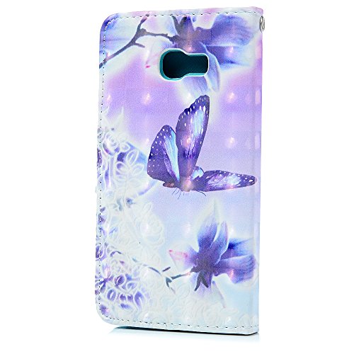 MAXFE.CO - Custodia a portafoglio in pelle ecologica in poliuretano di alta qualità per Samsung Galaxy A5 2017, motivo floreale stilizzato, 1 pennino capacitivo incluso Purple Butterfly