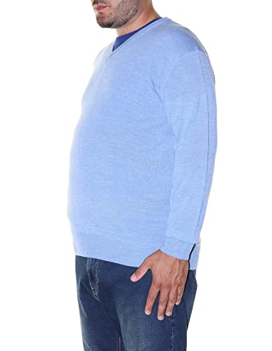 Maxfort Maglia Pullover Taglie Forti Uomo 3311 Misto Lana Collo a V - Azzurro, 7XL