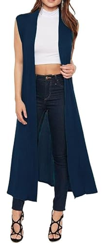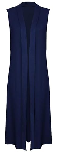 Maxi Cardigan Senza Maniche - con Colletto ed Aperto sul Davanti - UK 16-18 / EU 44-46 XL (Taglie Plus) - Blu Navy