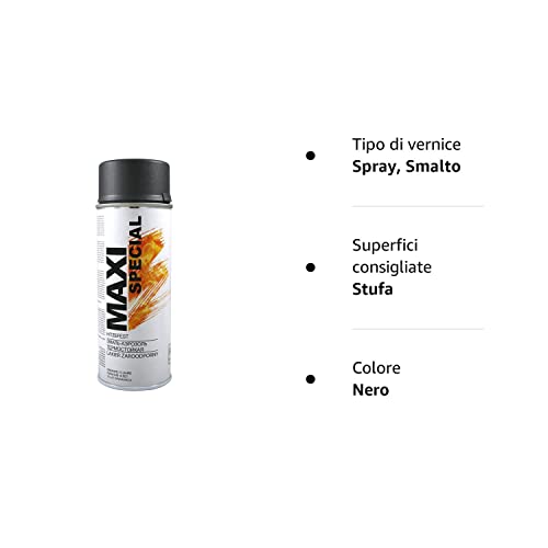 MAXI COLOR - Vernice spray resistente al calore, per forno, stufa, 400 ml, resistente alle alte temperature fino a 800 °C, nero opaco