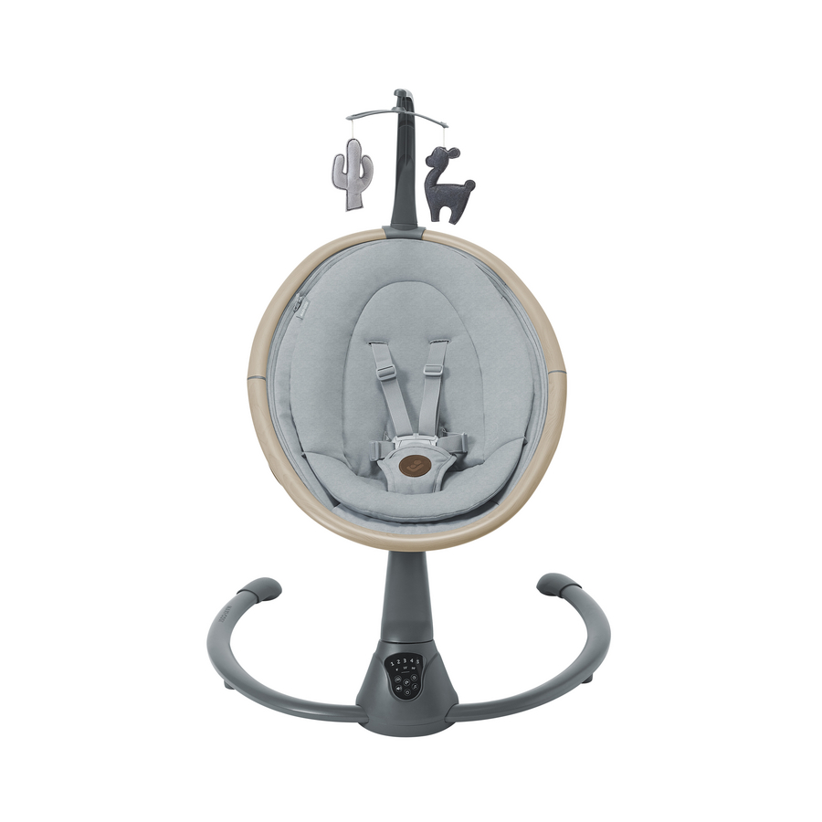 Dettagli del prodotto: Dalla nascita a 6 mesi (0 - 9 kg) Morbido inserto per neonati Molteplici posizioni di seduta e reclinazione Le posizioni reclinabili assicurano che il bambino possa reclinarsi comodamente o stare seduto in posizione eretta, a seconda delle necessità. Cintura di sicurezza imbottita a 3 punti Cinque velocità di dondolamento e 12 melodie rilassanti e suoni della natura 2 direzioni di dondolamento (avanti e indietro, avanti e indietro) Pannello di controllo con schermo Touch Possibilità di rotazione del sedile a 360° Può essere alimentato con l'adattatore di rete o a batterie (batterie non incluse) Rilevamento automatico del movimento Particolarmente leggero: può essere facilmente trasportato da una stanza all'altra Struttura compatta e poco ingombrante Due giocattoli inclusi Imbracatura di sicurezza a 3 punti Dimensioni e peso: Dimensioni (lunghezza x larghezza x altezza): 50 x 72,5 x 87,5-96,5 cm Seduta (lunghezza x larghezza): 50 x 72,5 cm Peso del prodotto: 4,5 kg Materiale e cura: Rivestimento: 100% tessuti riciclati ECO Care . Il cuscino della seduta con cerniera può essere facilmente rimosso ed è lavabile in lavatrice