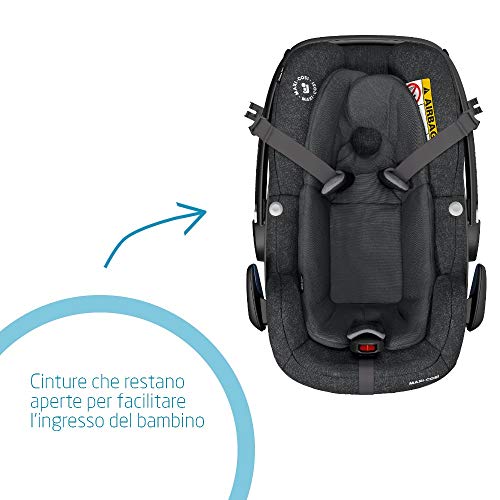 Maxi-Cosi Pebble Plus Seggiolino Auto Neonato Fino ai 12 kg (45-75 cm), I-Size, Cuscino Riduttore, Materiale Assorbi-Impatto, Omologato per Viaggi in Aereo, Nero