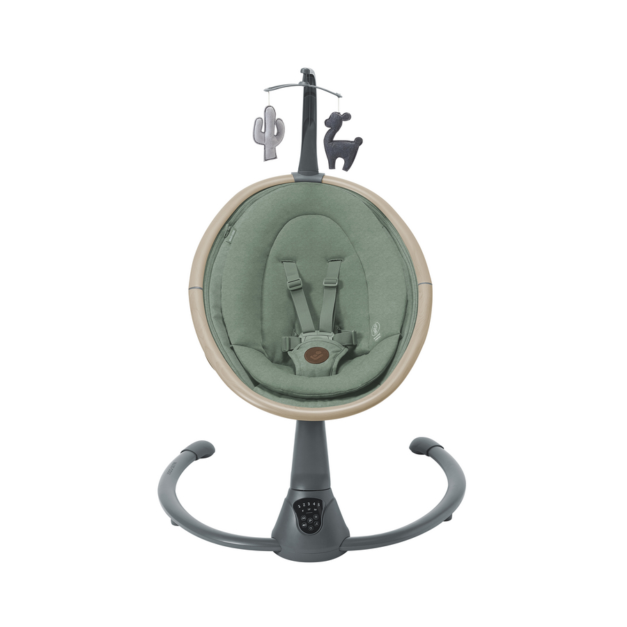Dettagli del prodotto: Dalla nascita a 6 mesi (0 - 9 kg) Morbido inserto per neonati Molteplici posizioni di seduta e reclinazione Le posizioni reclinabili assicurano che il bambino possa reclinarsi comodamente o stare seduto in posizione eretta, a seconda delle necessità. Cintura di sicurezza imbottita a 3 punti Cinque velocità di dondolamento e 12 melodie rilassanti e suoni della natura 2 direzioni di dondolamento (avanti e indietro, avanti e indietro) Pannello di controllo con schermo Touch Possibilità di rotazione del sedile a 360° Può essere alimentato con l'adattatore di rete o con le batterie (batterie non incluse) Rilevamento automatico del movimento Particolarmente leggero: può essere facilmente trasportato da una stanza all'altra Struttura compatta e poco ingombrante Due giocattoli inclusi Imbracatura di sicurezza a 3 punti Dimensioni e peso: Dimensioni (lunghezza x larghezza x altezza): 50 x 72,5 x 87,5-96,5 cm Seduta (lunghezza x larghezza): 50 x 72,5 cm Peso del prodotto: 4,5 kg Materiale e cura: Rivestimento: 100% tessuti riciclati ECO Care . Il cuscino della seduta con cerniera può essere facilmente rimosso ed è lavabile in lavatrice