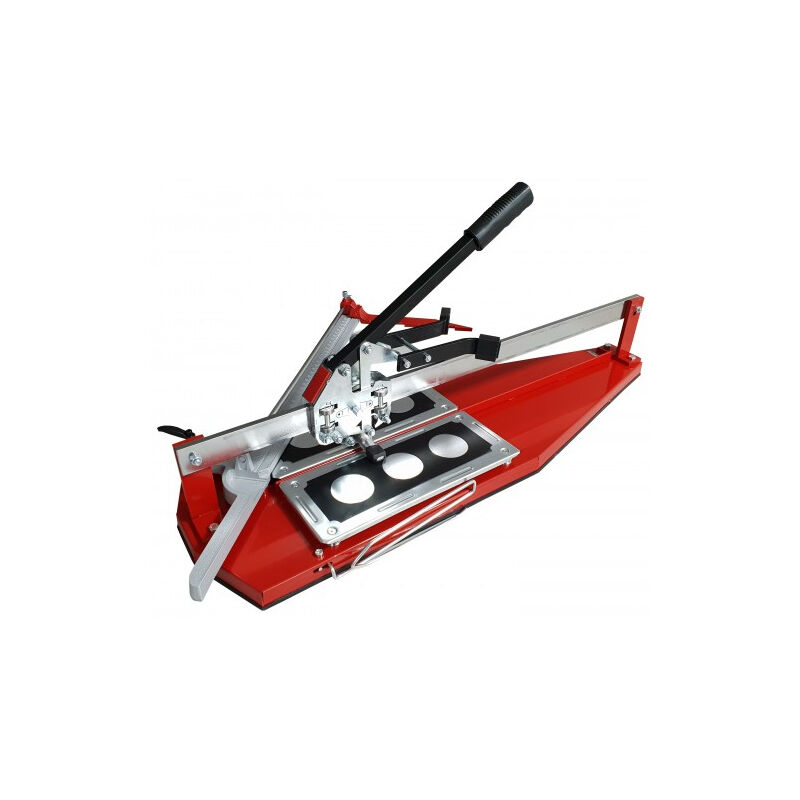 Dettagli: Tagliapiastrelle professionale Lunghezza di taglio 850 mm Piastre fissate alla base e montate su molle Testa di taglio dotata di 11 cuscinetti a sfera sigillati e scorrevole su una guida verticale in acciaio piatto 40 x 10 mm, che garantisce una totale inflessibilità nel taglio di piastrelle dure, con doppio sistema di rottura. Mola in carburo di tungsteno, adatta al taglio del gres porcellanato. Squadra di grande formato per tagli dritti e diagonali Barre di estensione laterali per piastrelle di grande formato Taglia piastrelle fino a 18 mm di spessore.