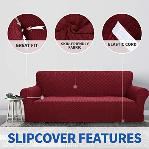 MAXIJIN Copridivano extra large per 3 o 4 posti, fodera per divano jacquard elasticizzata per cani Fodera per divano proteggi divano adatto agli animali domestici (4 posto, Jacquard Rosso)