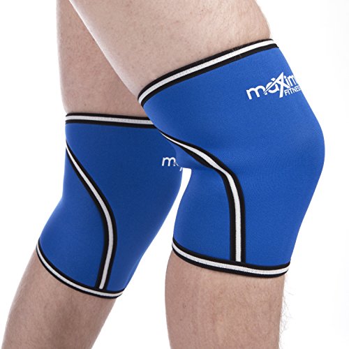 Maximo Fitness Knee Sleeves (1 Pair), 7 mm Neoprene Compression Knee Supports Crossfit, Weightlifting, Powerlifting, Running And all Sports - Ideal for Men & Women - 2 Year Warranty. (Small, Blue)