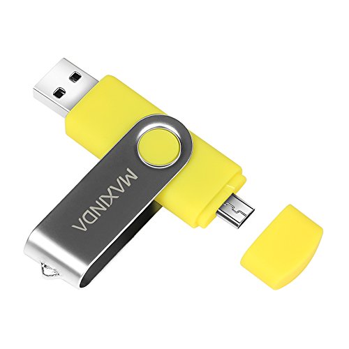 Maxinda(TM) - Chiave USB 16/32/64 GB, Micro USB 2.0 (OTG), memoria flash drive, design pieghevole per smartphone Android e tablet + cavo USB da 1 m giallo 32 GB