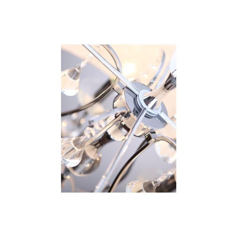 Potenza: 5 x 40W E14 230VH: 130 cm, Ø 60 cm, Finitura/Dettaglio finitura: cromoMateriale: metallo, vetro, tessuto/metallo, vetro, tessutoNon contiene lampadine/lampadine escluse