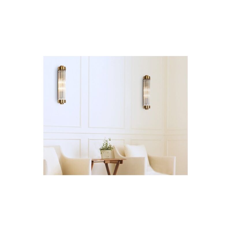Potenza: 2 x 40W E14 230VW: 9 cm, P: 9,5 cm, H: 40 cm, Finitura/Dettagli finitura: ottone/ottoneMateriale: metallo, vetro/metallo, vetroLampadine escluse/lampadine escluse