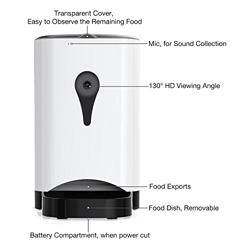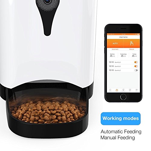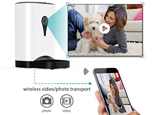 Maxmer 4.5L Alimentatore Automatico per Animali Distributore Cibo Gatti e Cani con Smart Automatic Pet Feeder Timer Controllato da Cellurare con Macchina Fotografica