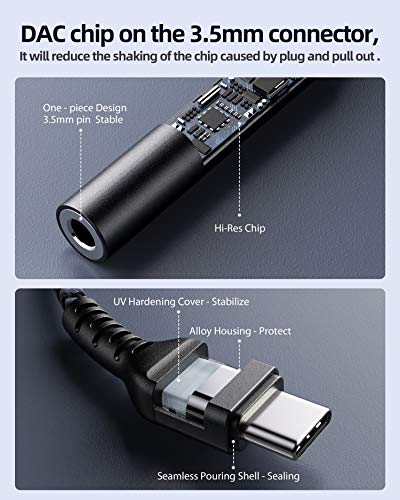 【Aggiorna versione: più stabile che mai】Adattatore con la massima qualità per cuffie Maxonar usb c progettato con un aspetto unico e innovativo. Il connettore di tipo c è più piccolo degli altri, perché abbiamo inserito il chip DAC sul connettore da 3,5 mm. Ridurrà lo scuotimento del chip causato da più plug and pull out per il tuo dispositivo. Ottieni il tuo adattatore per cuffie più resistente e fuori dallo stile volgare.