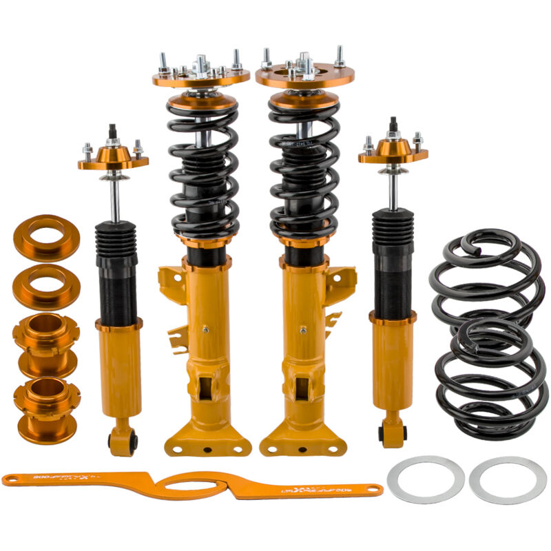 Application para BMW 3 Compact (E36) (1994-2001) 316i, 318tds, 318 Ti, 323 Ti, 316g Specifica: Supporti superiori: Supporti superiori a sfera a cuscino con piastra camber Smorzamento: non disponibile Tasso di molla anteriore: 8 kg/mm (448 lbs/in) Rigidità della molla posteriore: 5 kg/mm (280 lbs/in) Altezza regolabile: Sì abbassamento da 1'' a 3'' Tipo di ammortizzatore: doppio tubo Quantità: coilovers completi 2 anteriori e 2 posteriori un paio di chiavi for la regolazione dell'altezza Caratteristiche: 1. Regolazione dell'altezza ribassata da 1" a 3" che consente un baricentro più basso e aggiunge anche una posizione più aggressiva 2. Tensione della molla di precarico regolabile for ridurre in una certa misura il movimento a scatti 3. Piastra di camber regolabile e supporto superiore della sfera del cuscino for ottimizzare la risposta dello sterzo. (for alcuni modelli) 4. Staffe superiori e armadietti in alluminio lavorato a CNC - eccellente resistenza e risparmio di peso 5. Staffe