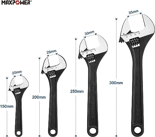 MaxPower 4pezzi Chiave a Rullino Set 150mm/200mm/250mm/300mm Apertura Massima 20mm/25mm/30mm/35mm Chiave Regolabile Chiave Inglese Universale