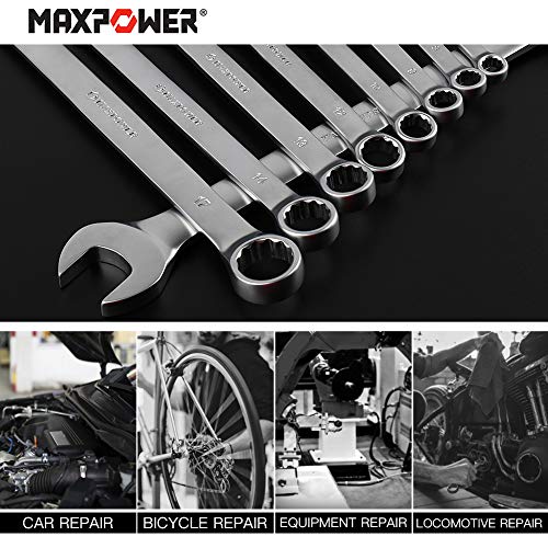 MAXPOWER Chiave combinata, set di chiavi 9PCS chiave a doppio scopo, 8-19 mm.