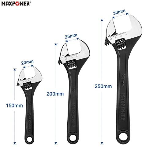 MAXPOWER 3 Pezzi Chiave Regolabile Set 150mm/200mm/250mm Apertura Massima 20mm/25mm/30mm Chiave a Rullino Chiave Inglese Regolabile