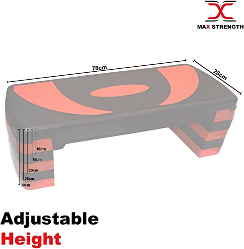 MAXSTRENGTH - Stepper per esercizi di allenamento, 5 altezze regolabili, 10 cm, 15 cm, 20 cm, 25 cm, 30 cm, antiscivolo, per aerobica, fitness, cardio, casa, palestra, routine, allenamento (rosso)