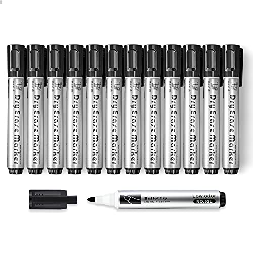 Maxtek Pennarelli per lavagna bianca, tutti neri, cancellabili a secco, per ufficio, scuola, casa, confezione da 12 pezzi