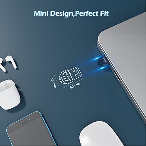 Maxuni Adattatore USB Bluetooth 5.1 dongle per PC Laptop Computer Desktop Desktop Low Latency EDR Receiver Mouse, Supporto Windows 10/11 (Plug and Play)