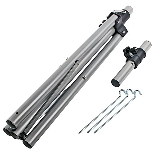 Il treppiede Maxview resiste a qualsiasi vento, con una superficie di appoggio di circa 100 cm x 100 cm rimane saldamente al suo posto. Inoltre, il treppiede può essere fissato con picchetti. Grazie alla livella a bolla è facilmente allineata. Inoltre è telescopico e ha un ingombro ridotto. La qualità e le soluzioni di dettaglio soddisfano ogni esigenza.
